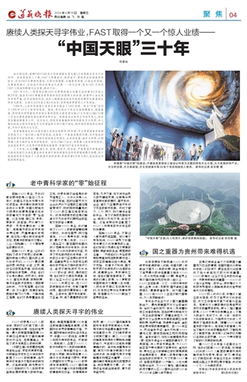 回眸FAST伟业,不禁让人感动得热泪盈眶。可以毫不夸张地说,FAST凝聚了我国老中青三代科技精英的心血。他们本可以获得比当下更高的报酬、更舒适的生活、更显赫的名誉……然而他们从开始的披荆斩棘直到现在默默厮守在人迹罕至的偏僻山凹大窝凼,毫不动摇。我曾多次听说,国外数家顶级科研机构以优渥的条件,邀请南台长、彭勃等去工作,但他们都婉言谢绝了。其间我们痛心的是,令人崇敬的中国射电天文奠基人王绶琯、人民科学家南仁东已离开我们,还有两位贵州优秀青年罗罡、李维星也为FAST献出了宝贵的生命。