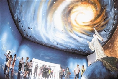 伴随着“中国天眼”的建设,平塘县克度镇动工建设以科普为主题的特色天文小镇,大力发展研学产业,天文时空塔、天文体验馆、天文观测演示等20余个项目相继投入使用。 新华社记者 欧东衢 摄