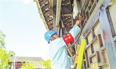 连日来,务川自治县供电局大坪街道供电所组织党员工作人员对龙潭古寨景区电力线路进行巡查检修,以确保用电安全。