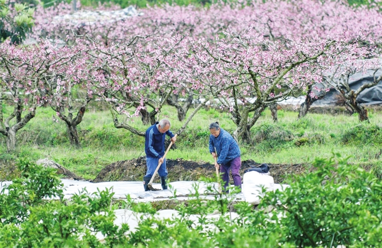 图为3月21日,农民在余庆县白泥镇明星社区田间劳作。