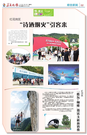 10月1日至7日,“诗酒烟火地·悦游红花岗”遵义市2025年国庆中秋酱酒音乐美食消费季活动在凤凰山文化广场举行。活动以“遵义故事·就在红花岗”为主题,打破传统节庆模式,融合酱酒文化、音乐演艺、特色美食与非遗体验,打造了一场“可购、可游、可互动”的多维消费盛宴。